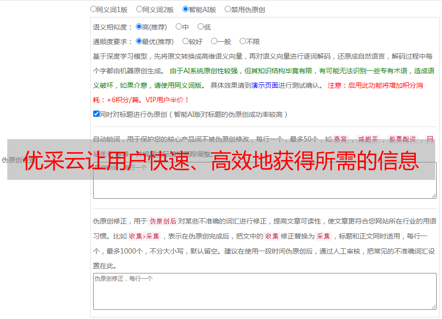 优采云是目前国内最具前瞻性的全自动文章采集工具,它将解决信息采集的难题,帮助用户高效、安全地采集各类信息。它以其强大的技术优势,能够将多个来源信息整合到一起,并对这些信息进行分类筛选,从而有效地减少用户寻找信息所浪费的时间和劳动力。