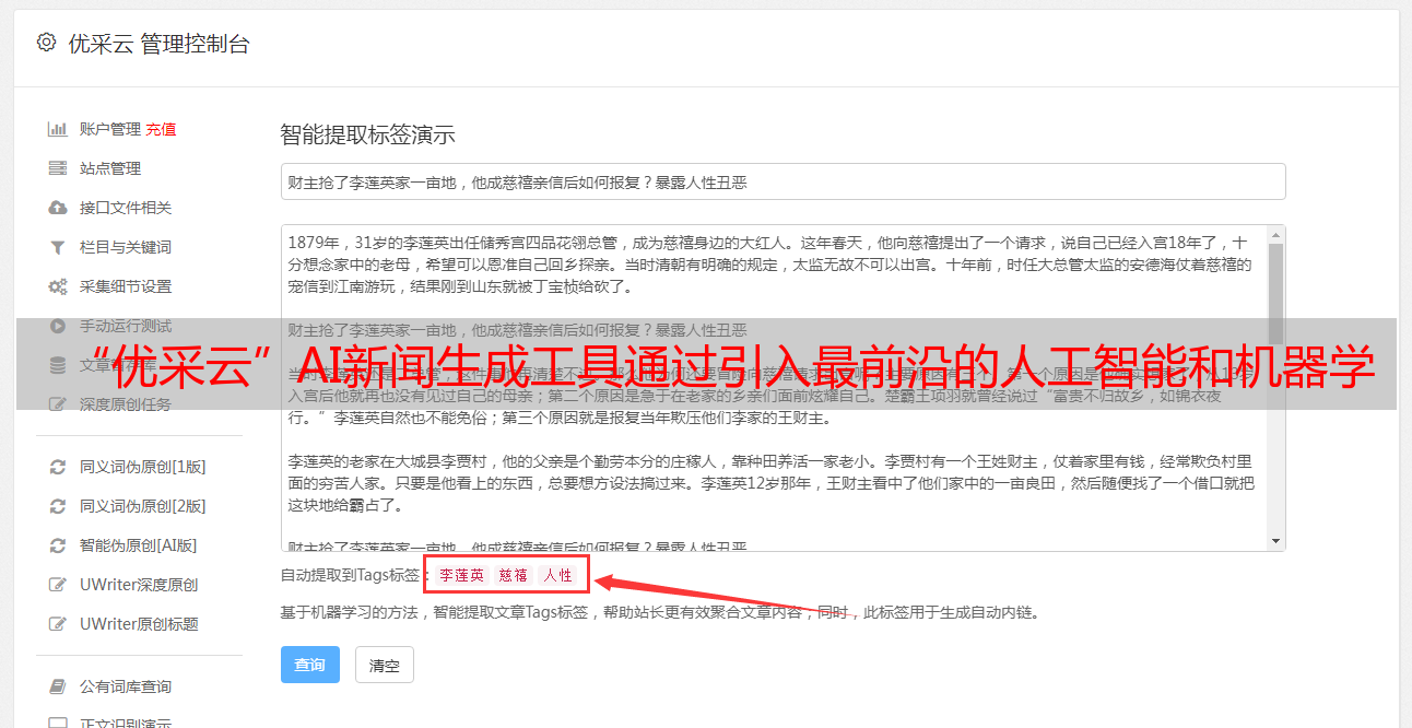 “优采云”AI新闻生成工具通过引入最前沿的人工智能和机器学习技术