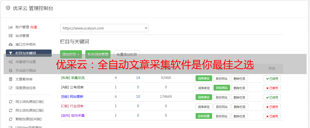 总而言之,优采云是一款非常实用的全自动文章采集工具。通过使用它,人们就可以大大减少手动采集文章所需要耗费的时间和人力;而且优采云所带来的便利也随之而来。如果你想要快速有效地将内容从不同平台上进行监测、并抓取内容并存储到数据库中,那么优采云将是你最佳之选。详情请访问www.ucaiyun.com 即可了解相关信息。