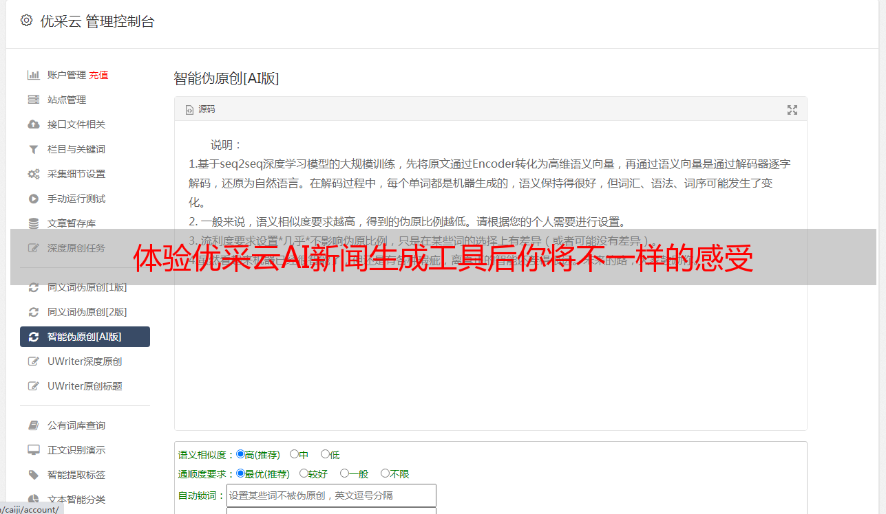 如果你对AI新闻生成工具感兴趣,不妨前往www.ucaiyun.com/index.html 立即体验优采云AI新闻生成工具。体验优采云 AI 新闻生成工具后你将不一样的感受它带来的“便捷+超强性能+高效+创新”四大优势。