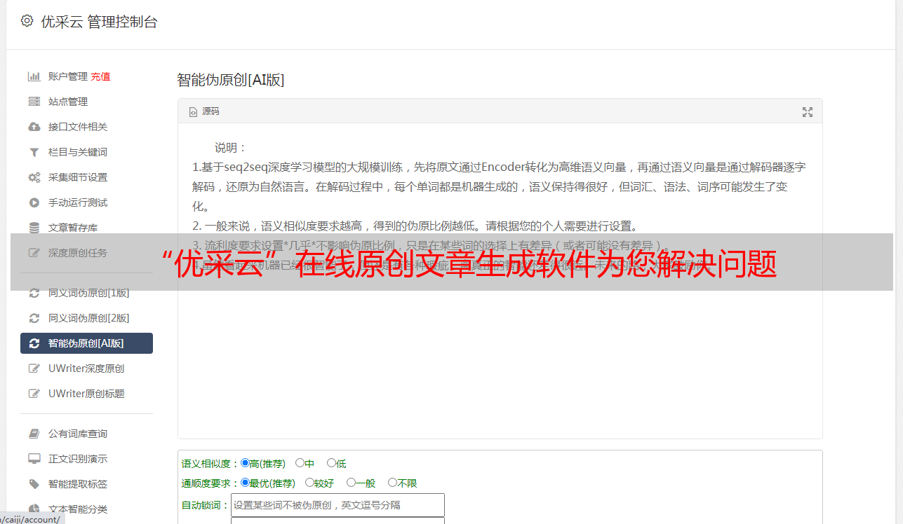 “优采云”在线原创文章生成软件为您解决问题