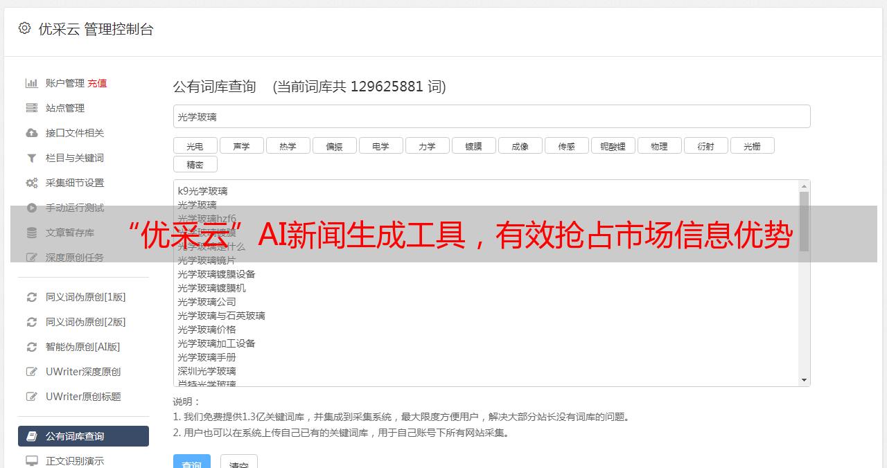 “优采云”AI新闻生成工具,有效抢占市场信息优势