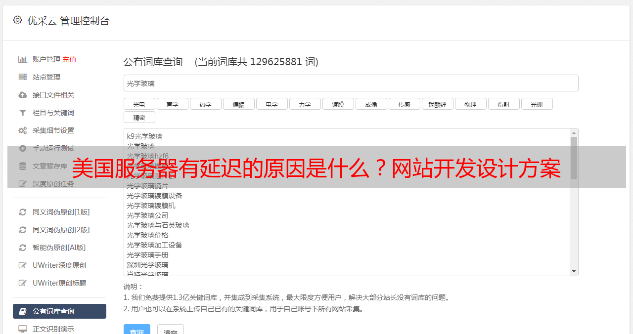 优采云 发布时间: 2021-06-03 02:51美国服务器有延迟的原因是什么?网站开发设计方案