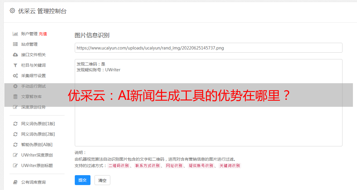 如今如此浩大的信息量要想在合理时间内找出真相,“AI 新闻生成工具”就是一剂“神奇”的益气,能帮你快速准确地找出真相,快速准确地创作文章.想要尝试“AI 新闻生成工具”,就上优采云:www.ucaiyun.com试试吧!