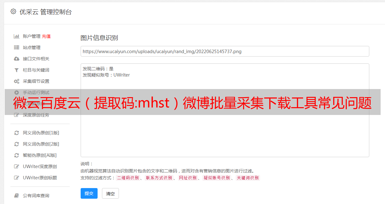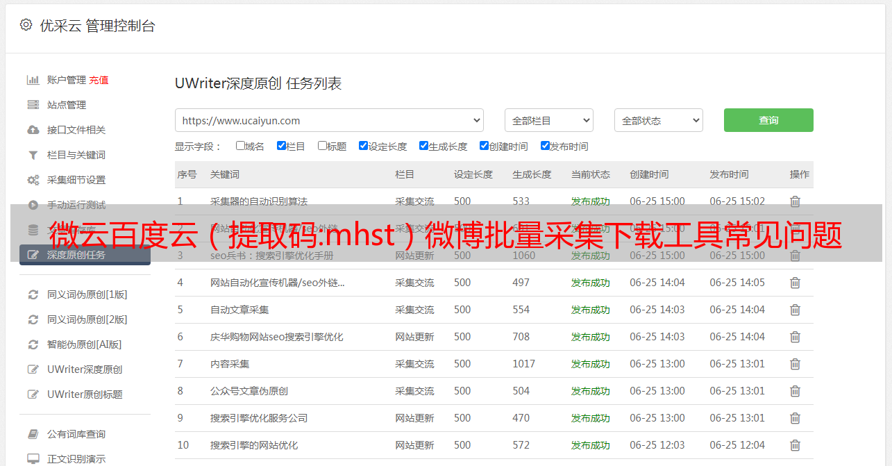 优采云 发布时间: 2021-06-03 03:21微云百度云(提取码:mhst)微博批量采集下载工具常见问题