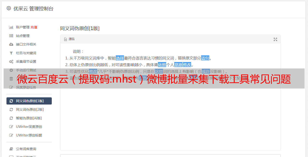 微云百度云(提取码:mhst)微博批量采集下载工具常见问题