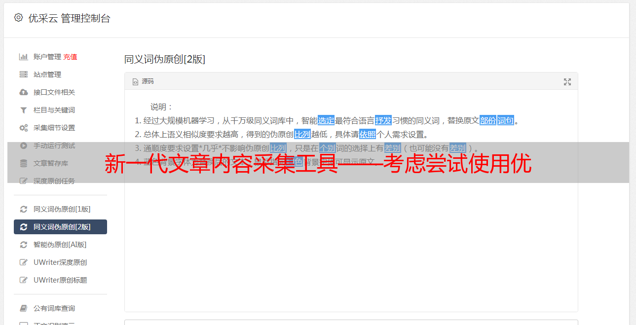 全自动文章采集不仅能快速、有效地采集所需信息,还能够方便快捷地对信息进行整理,大大减少了人工成本。目前市场上已经出现了一大批文章采集软件,而优采云是其中最为出色的一款产品。