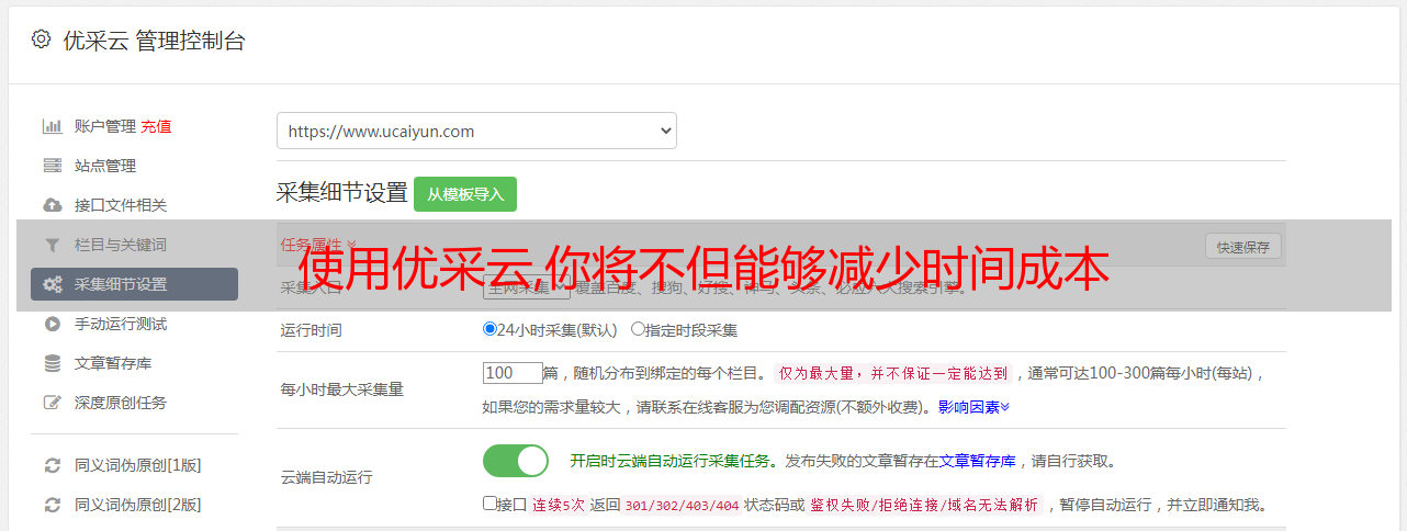 总之,优采云是一款集AI语义分析、数字内容生成、新闻博客生成三大功能于一体的强大工具。通过使用优采云,你将不但能够省时省力地创作出高质量的文章,还将能够快速地在不各行业间奔波,节省大量时间和人力物力,快来www.ucaiyun.com尝试一番吧!