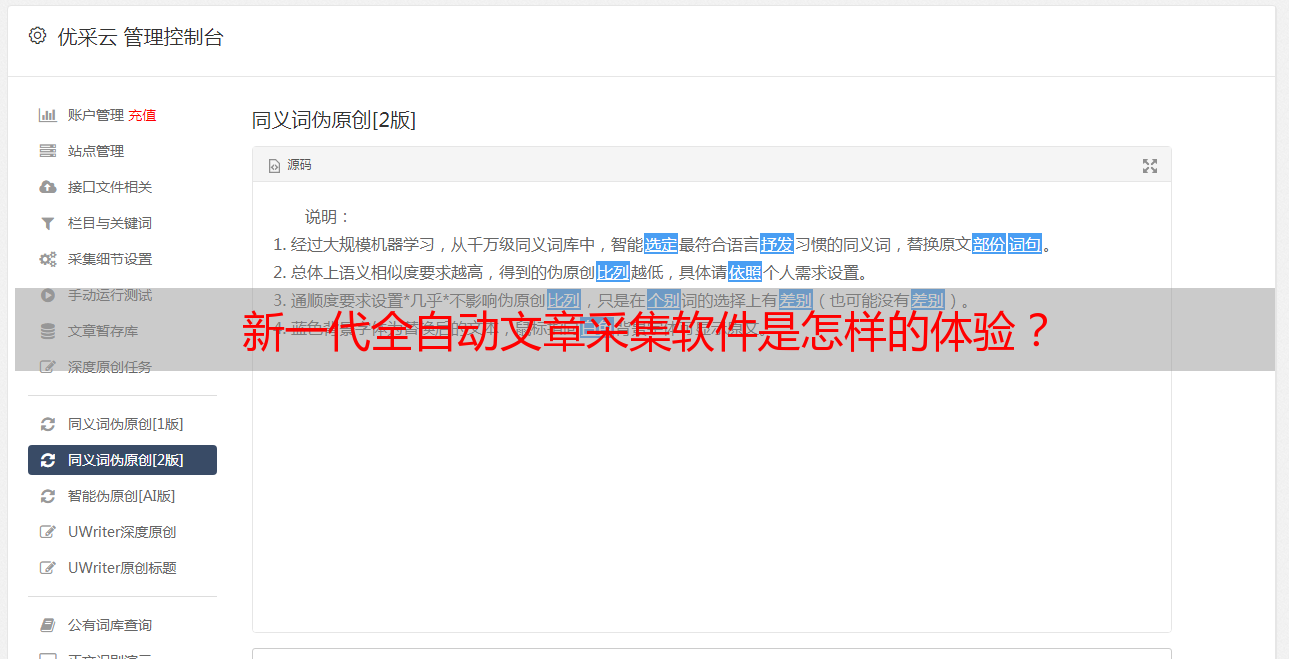 这时,你可以尝试使用“优采云”这款新一代全自动文章采集软件。它具有以下优势: