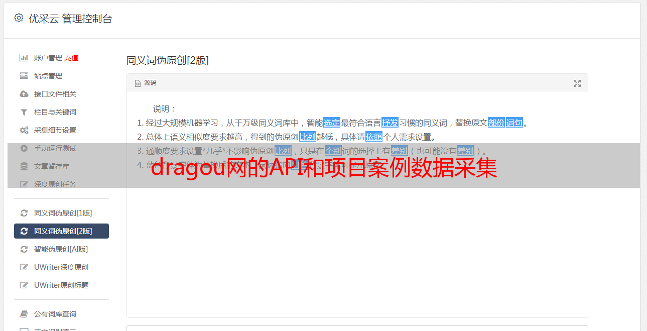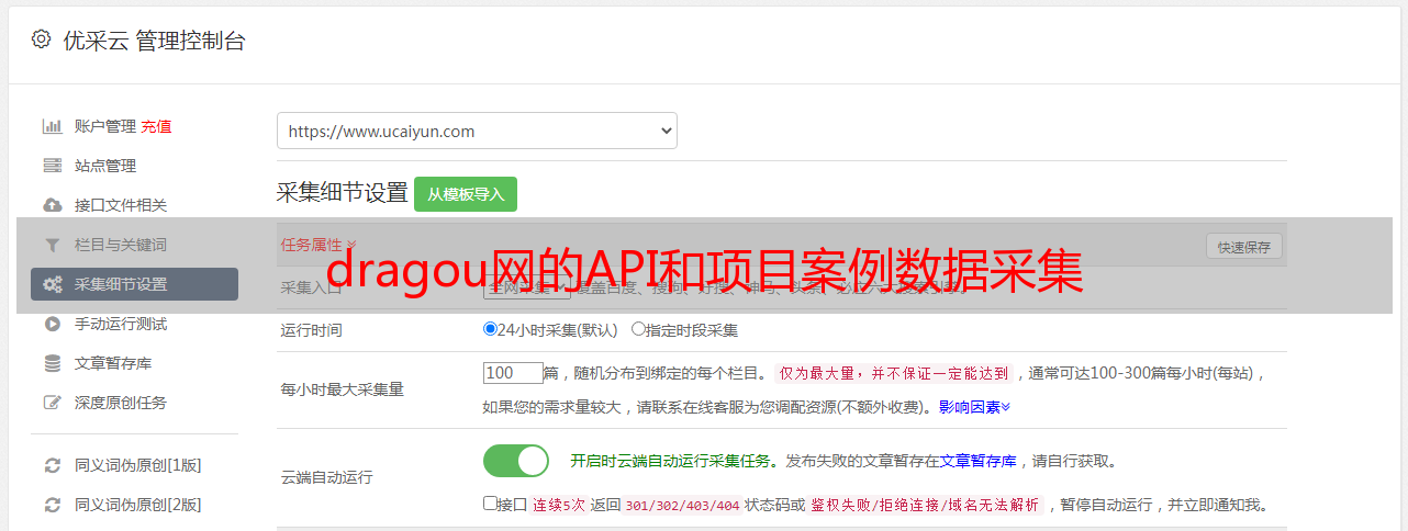 dragou网的API和项目案例数据采集