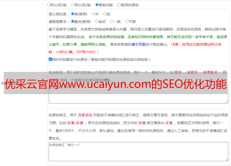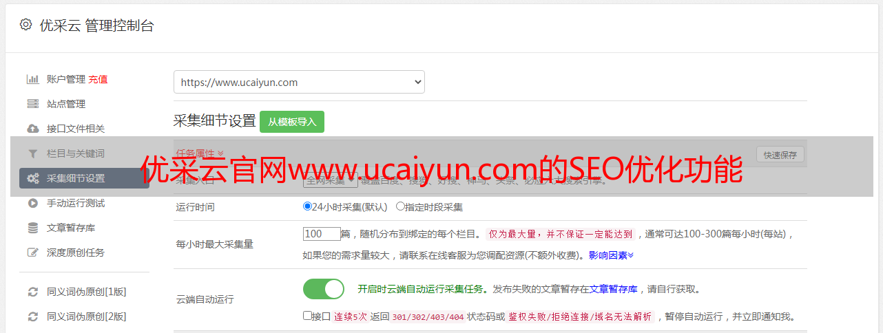 优采云官网www.ucaiyun.com的SEO优化功能