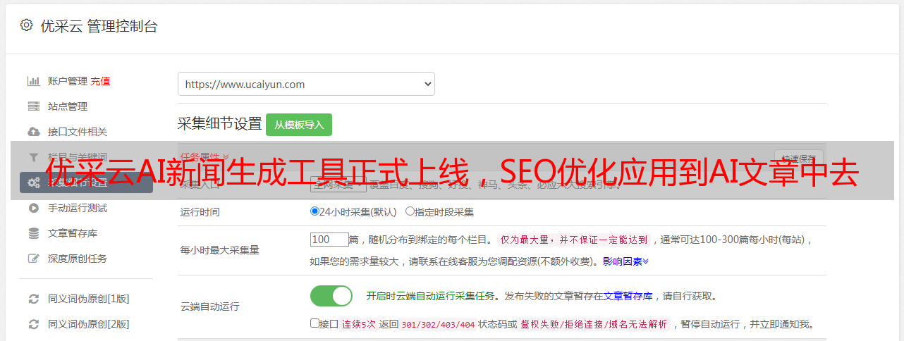 优采云AI新闻生成工具正式上线,SEO优化应用到AI文章中去