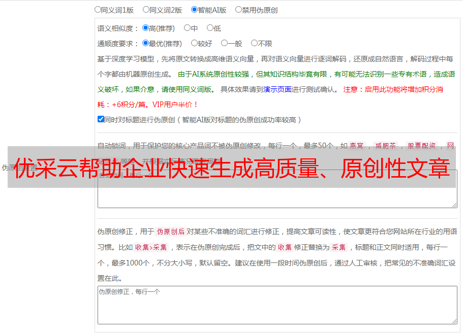 此外,优采云还可以为用户提供语义分析、句法分析、关键词分析等功能,使用者可以根据自己的需要对文章进行相应的调整。这样一来,用户就可以很方便地生成高质量、原创性的文章。