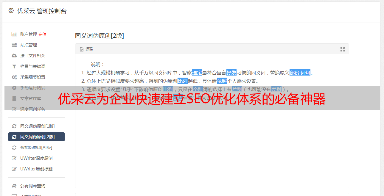 使用优采云后,不仅可以大幅度减少人工干预时间;而且还能够有效避免人工干预带来的风险。因此,优采云不仅是一款强大的全自动文章采集工具;也是一个能够帮助企业快速建立SEO优化体系的必备神器。