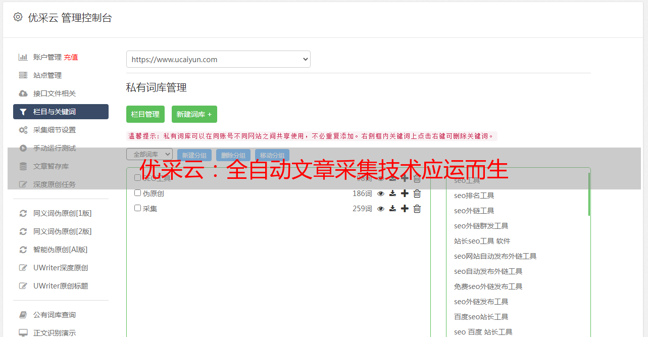 优采云是一款全自动文章采集工具,它能够根据用户搜索关键词,从各大搜索引擎中自动采集相关文章。它不仅能够根据用户需要快速找到合适的文章,而且能够将采集到的文章进行分类、去重、整理等处理,并且实现一键生成Word文件或PDF格式的文件。