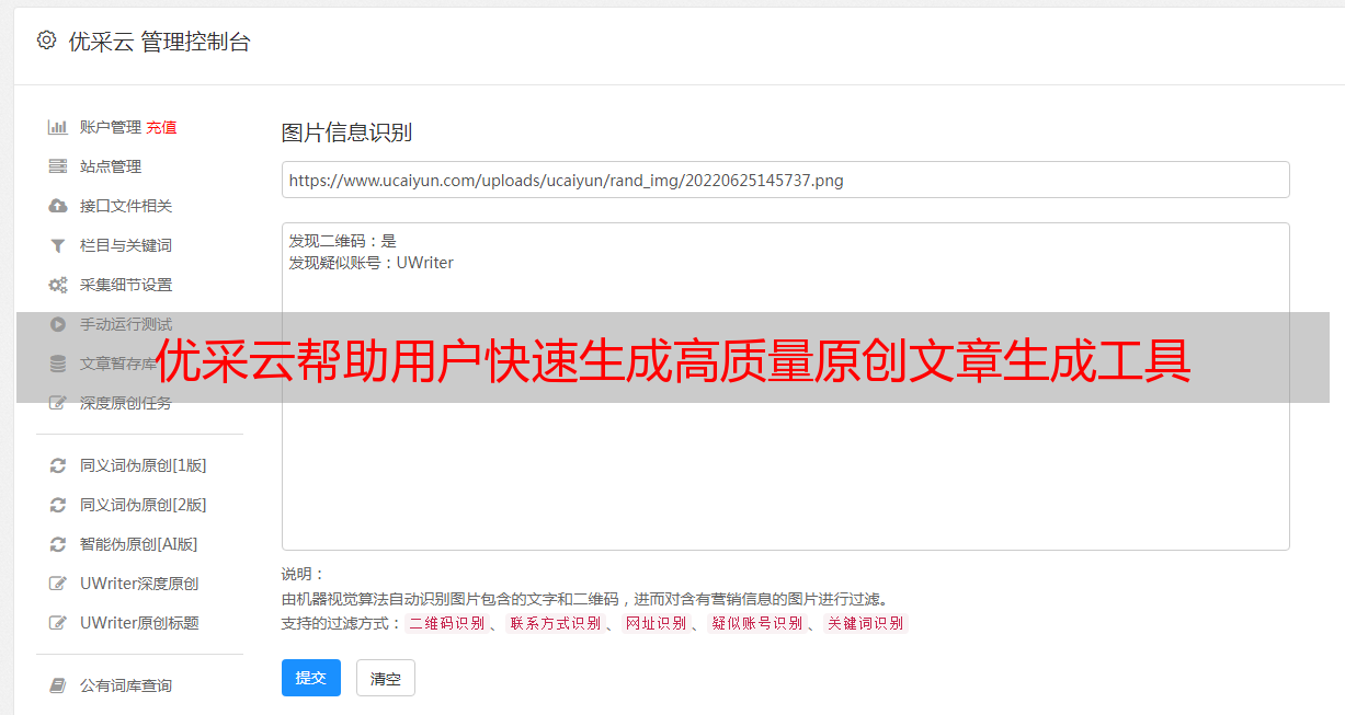 总之,作为一个强大的在线文章生成工具,优采云不仅可以帮助用户快速生成高质量原创文章,而且还能帮助用户将文章在各大平台上实现SEO效果最佳。如想要体验该工具的强大功能,可前往www.ucaiyun.com 进行体验。