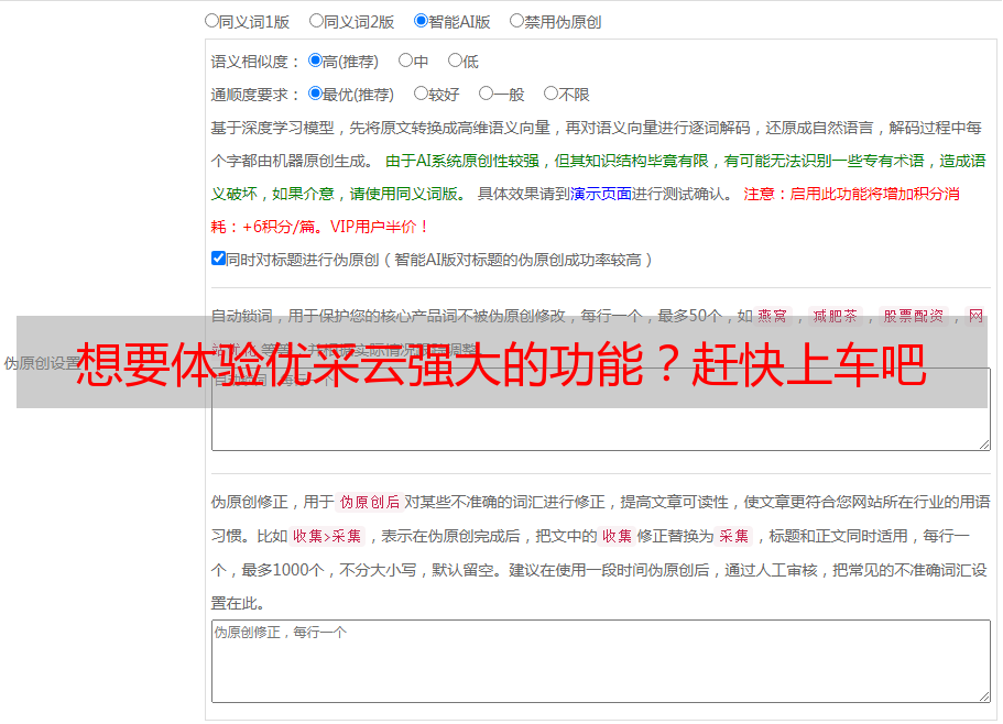 总之,优采云是一款十分强大的文章生成软件,它不仅可以帮助用户快速地创作出高质量的文章,还可以根据不同行业特点提供专业的内容建议和帮助。此外,优采云还可以对文章进行SEO优化,使文章在搜索引擎中能够得到最佳呈现效果。想要体验优采云强大的功能?那么赶快上www.ucaiyun.com注册吧!