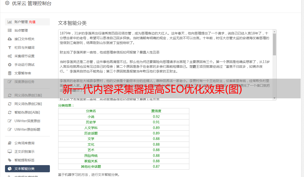 优采云不仅能够快速地抓取各种类型的文章,而且还能够根据用户需要对文章进行语义分析和数据处理。它可以帮助用户将原始数据转化为有意义的信息,从而有效地提高SEO优化效果。此外,优采云还可以追踪来路、话题、关键词相关性等信息;它还能够根据用户需要将信息保存到不同格式的文件中;同时,优采云也能够对已经采集好的内容进行分类别存储和内容校对。