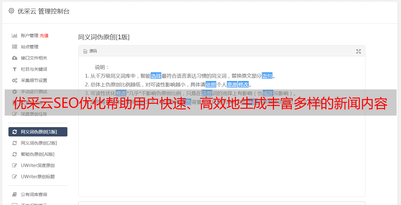 优采云SEO优化帮助用户快速、高效地生成丰富多样的新闻内容