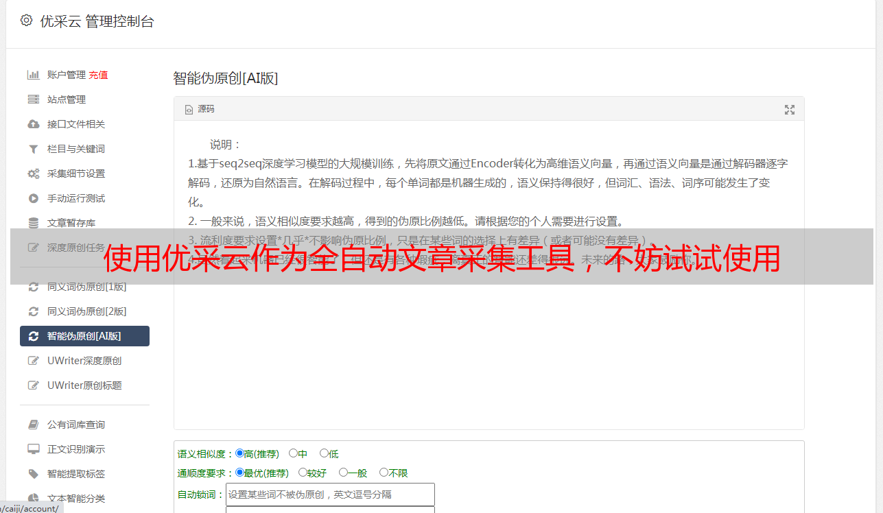 使用优采云作为全自动文章采集工具,不妨试试使用