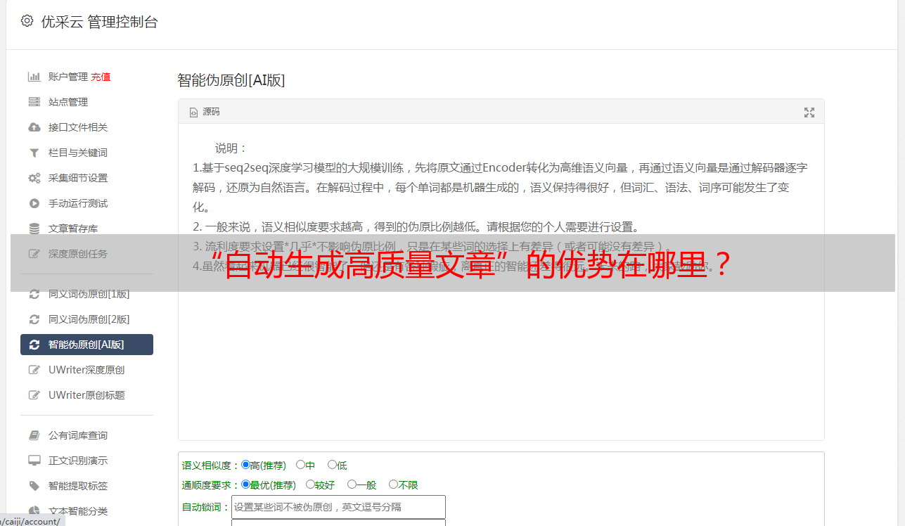 “自动生成高质量文章”的优势在哪里?