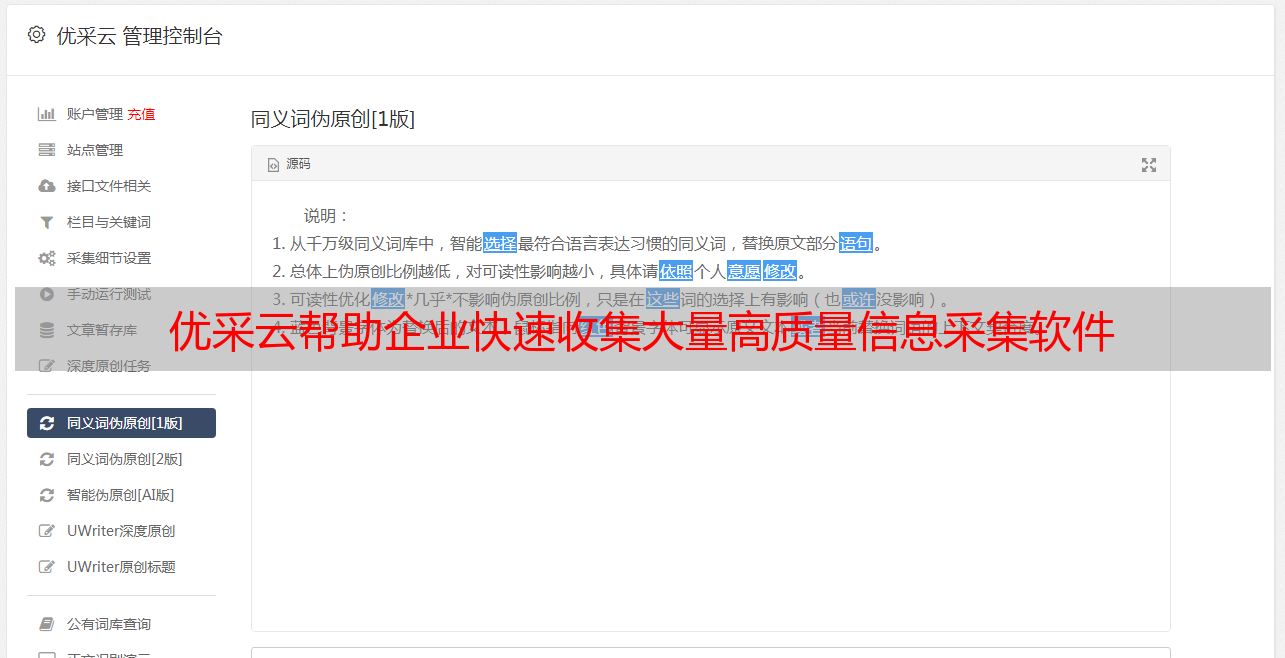 总而言之:优采云是一个强大而便捷的全自动文章采集工具;它可以快速准确地将相关信息采集归类整理;并利用SEO优化将这些信息进行整合,使之成为企业独有内容;同时,又能够帮助企业高效节省时间和人力成本.如想了解详情,还请浏览官网www.ucaiyun.com.