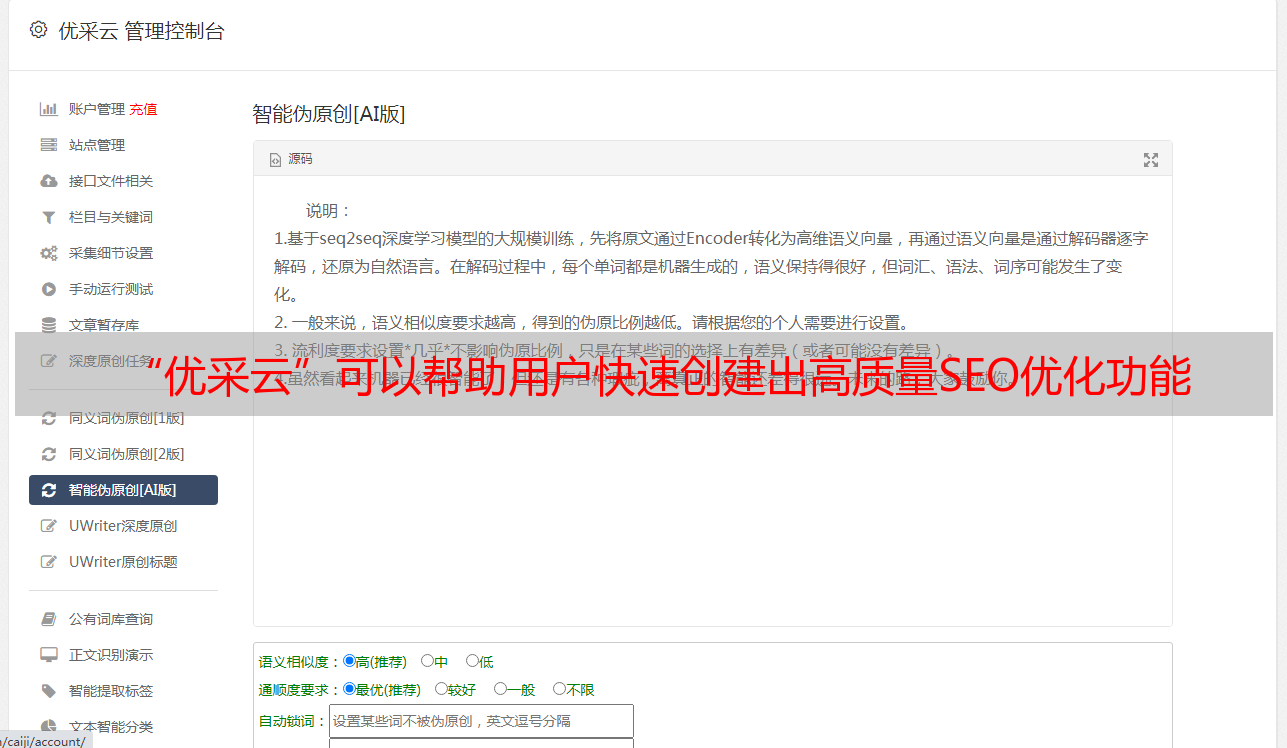 “优采云”可以帮助用户快速创建出高质量SEO优化功能