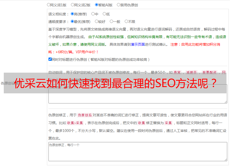 此外,作为一款出色的SEO解决方案,优采云也具备强大的用户体验。该软件拥有人性化的界面设计,使用者能够很轻松地对相关内容进行修正和修改。此外,该软件也集成了一部分AI组件,能够根据用户使用习惯来学习并改善使用体验。