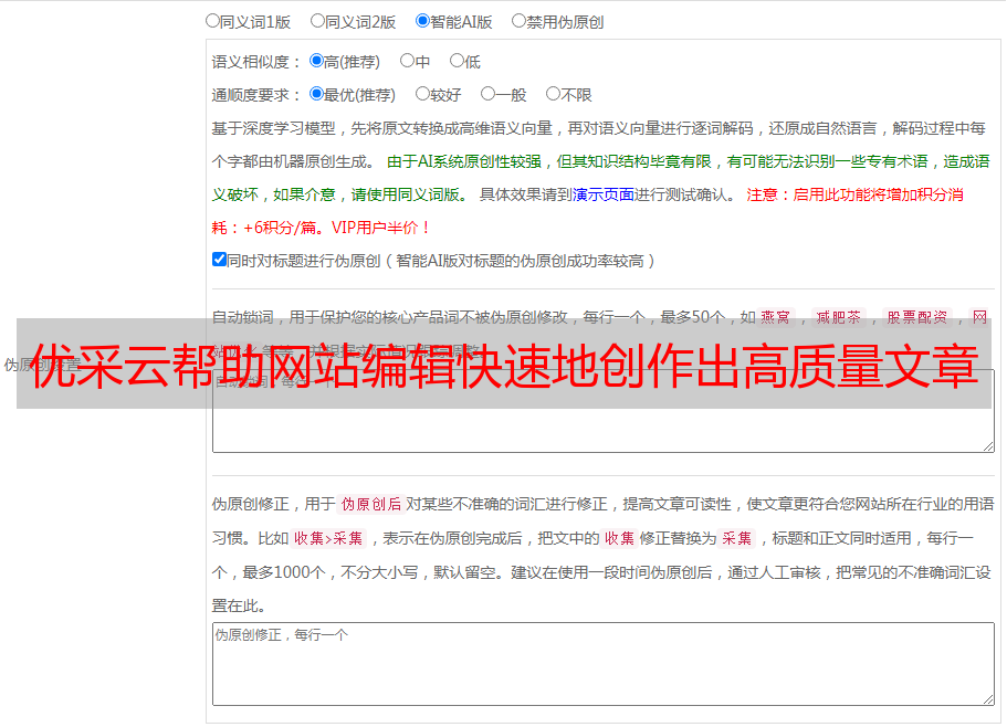 优采云 发布时间: 2023-01-08 11:29全自动采集伪原创是一种新型的文章写作技术,它可以帮助网站编辑快速地创作出高质量的文章。优采云是一款功能强大的SEO优化软件,它可以帮助网站主快速地提升网站的收录和权重,使其排名更靠前。