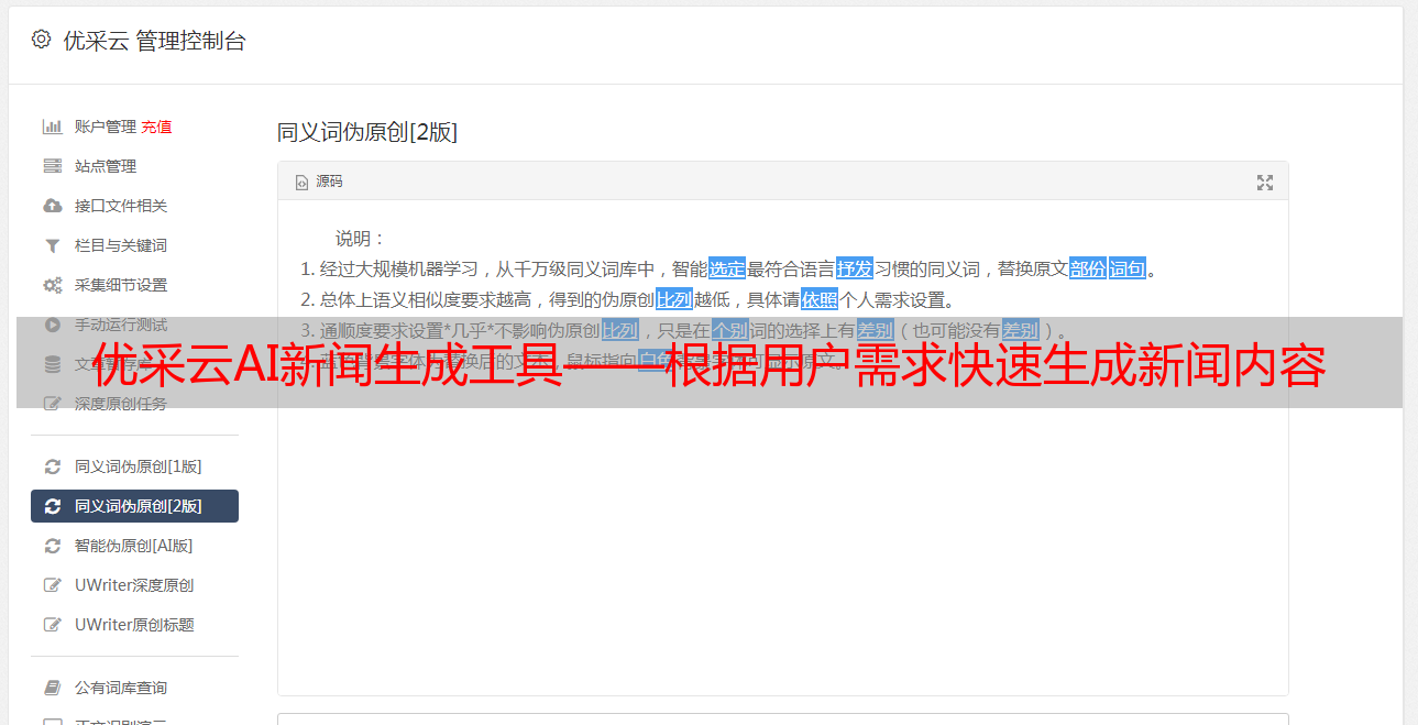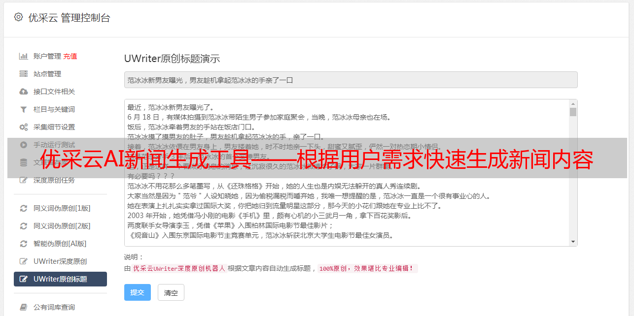 优采云AI新闻生成工具——根据用户需求快速生成新闻内容