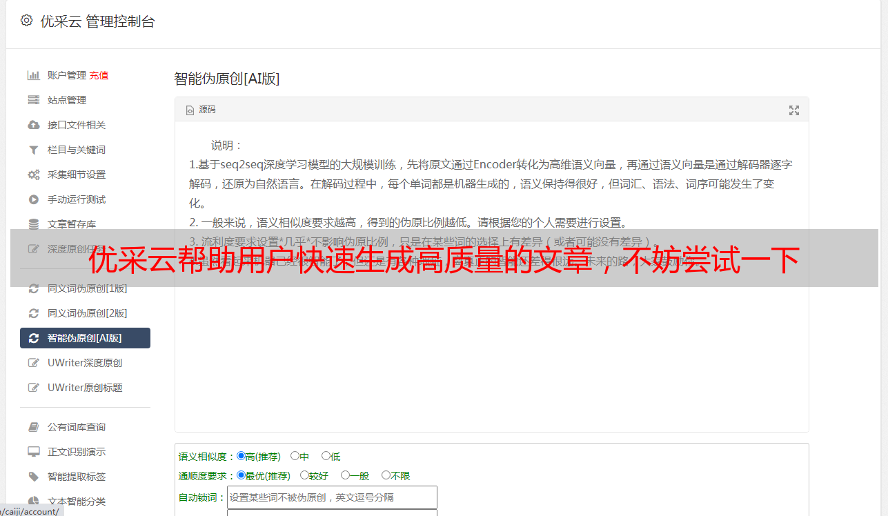 优采云帮助用户快速生成高质量的文章,不妨尝试一下