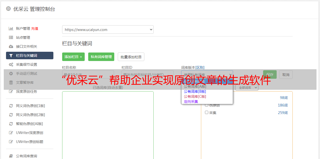 总之,“优采云”这款在线原创文章生成软件不但能够快速生成高质量、SEO 优化效果好、100%不存在盗版风险的原创文章,而且使用也十分方便快捷。对于想要快速生成原创文章并提升SEO效果、浏览量的用户来说都是一个不错的选择。如果想要使用该软件就可以前往它的官网www.ucaiyun.