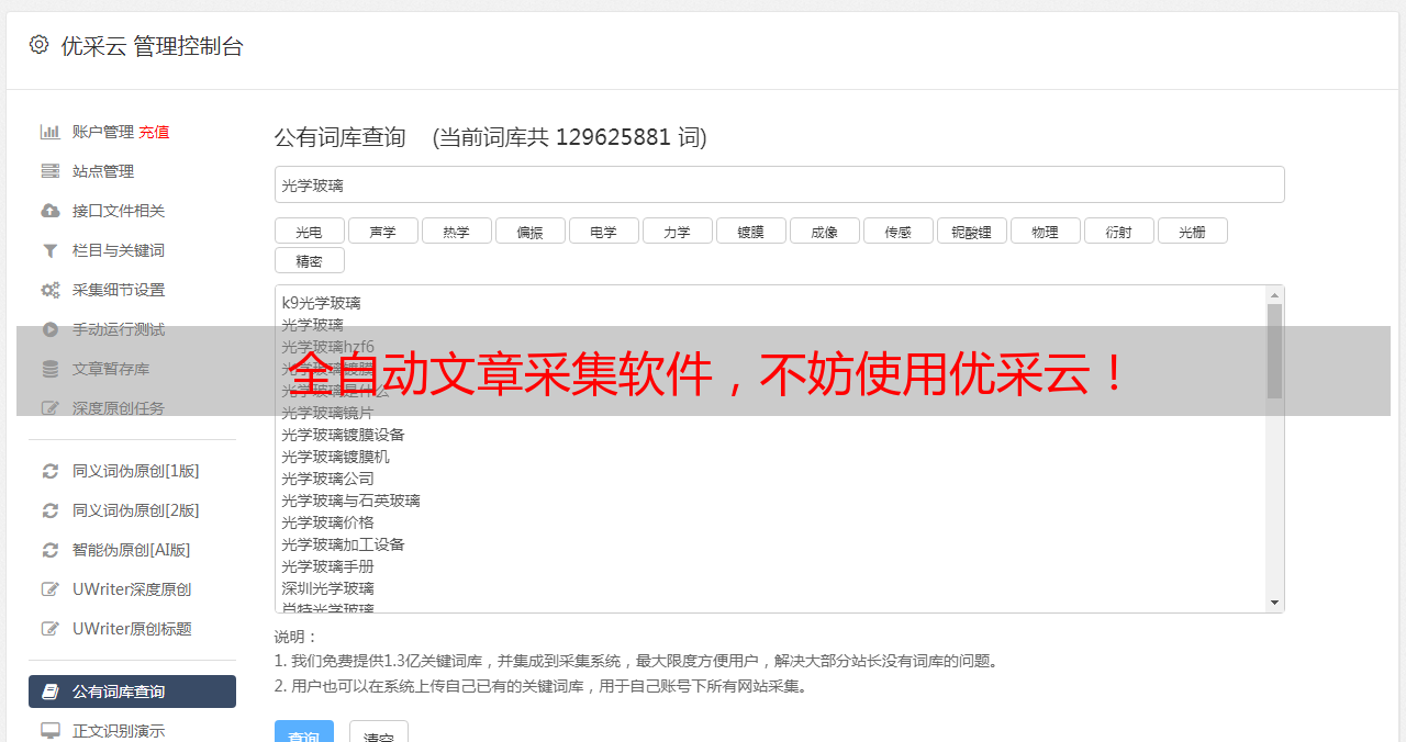 总之,优采云是一款专业而功能强大的全自动文章采集软件,它不仅具有强大的SEO优化能力和快速、高效地发布及定时发布能力,而且还能够很好地保障用户数据的安全性。如果你想要快速、高效地进行内容采集工作,不妨使用优采云!它的官网是www.ucaiyun.com !