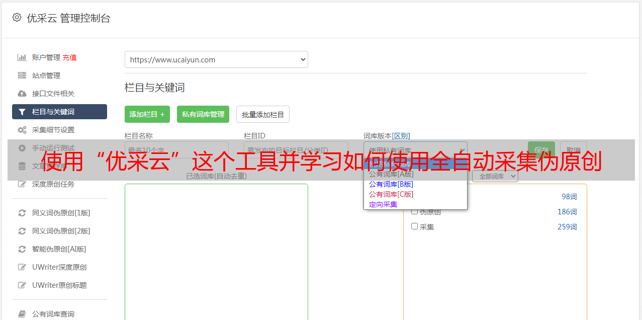 使用“优采云”这个工具并学习如何使用全自动采集伪原创