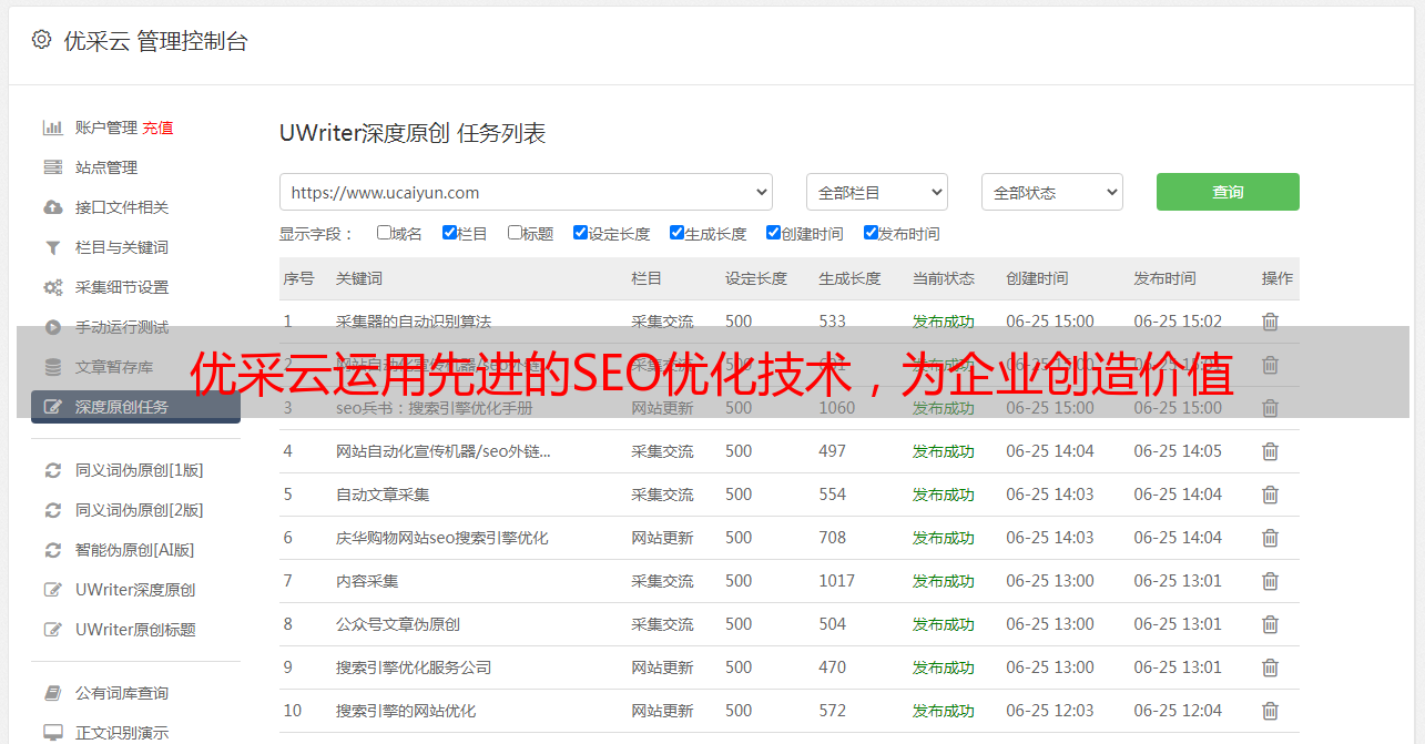 优采云运用先进的SEO优化技术,能够实时监测各大网站上公布的内容,从中抓取有价值的数据,并根据用户的需要对其进行分类、存储和处理。此外,它还能够实时收集各大新闻平台上新发布的文章,并根据用户需要对其进行分类、存储和处理。