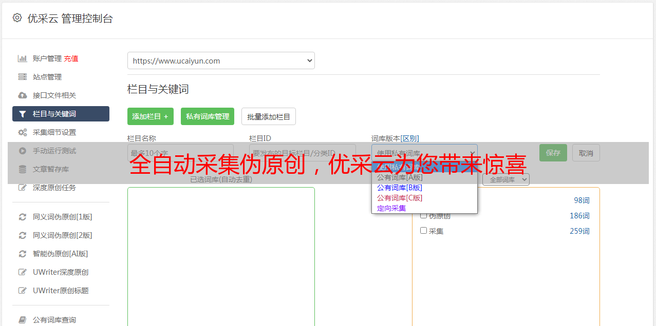 优采云 发布时间: 2023-01-09 21:24现在,随着互联网的发展,搜索引擎优化已成为一项重要的网站推广活动。有效的SEO优化可以帮助企业节省大量的推广费用,提高网站曝光度,从而获得更多的客户流量。但是,随着SEO行业的发展,传统的SEO方法已不能有效地应对市场竞争。因此,越来越多的企业开始使用新型SEO优化方法,其中之一就是全自动采集伪原创。