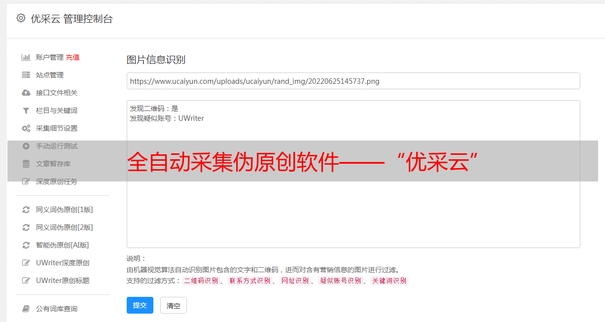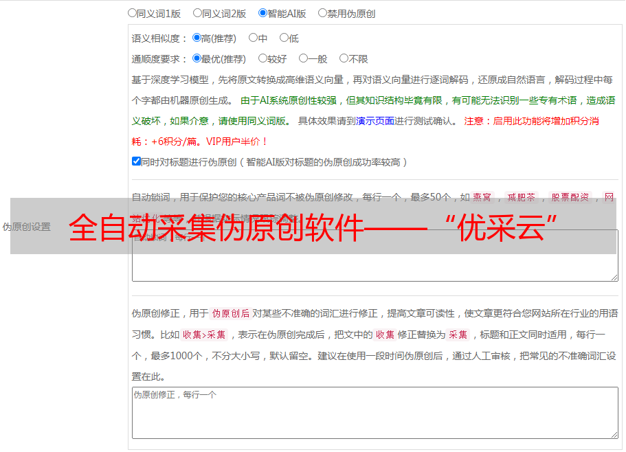 为了解决这一问题,一款全自动采集伪原创软件——“优采云”应运而生。它能够将网络上原有的文章进行采集,并通过高效的混合算法对文章进行“伪原创”处理,使文章保留原有文章的大部分内容,但又不会存在重复、相同的部分。