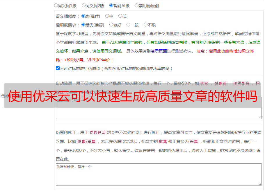 优采云是一款专门为企业客户提供高质量文章生成服务的软件,其中包含SEO优化功能,可以有效促进企业在网上的宣传和推广,大大提升网站的流量和用户体验。