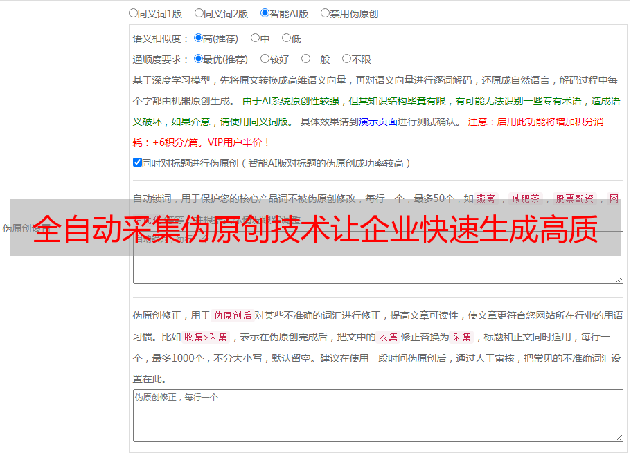 全自动采集伪原创技术让企业快速生成高质量、高效率的文章内容