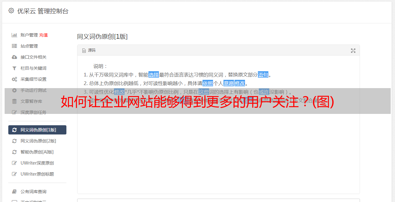 优采云 发布时间: 2023-01-10 17:18随着互联网的发展,企业网站已成为企业形象的重要窗口,也是企业宣传和推广的重要手段。拥有一个具有自己特色的企业网站,可以让更多的用户了解到企业,从而提高品牌影响力和市场份额。因此,如何让企业网站能够得到更多的用户关注,就成了众多企业面对的一大难题。
