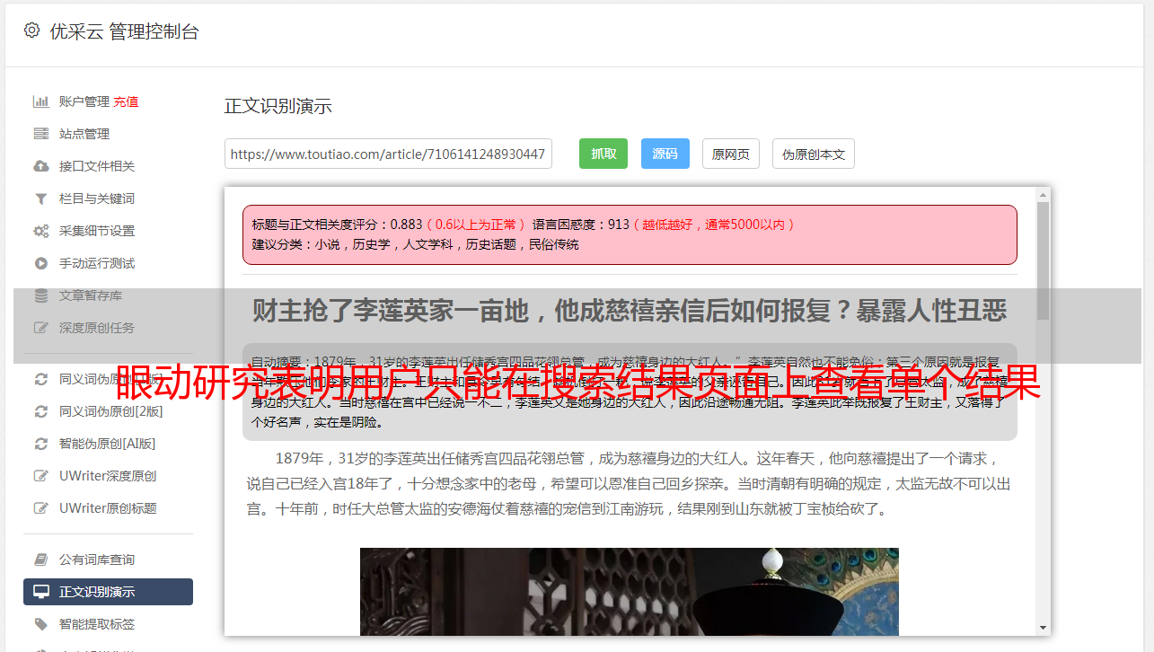 眼动研究表明用户只能在搜索结果页面上查看单个结果