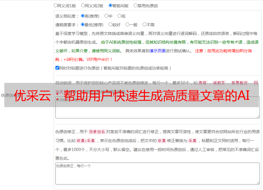 优采云:帮助用户快速生成高质量文章的AI写作工具