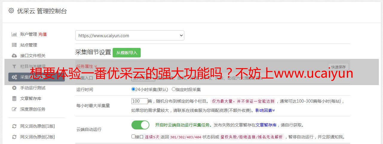 想要体验一番优采云的强大功能吗?不妨上www.ucaiyun