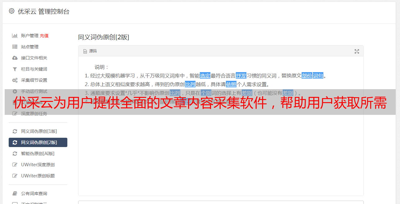 优采云为用户提供全面的文章内容采集软件,帮助用户获取所需信息