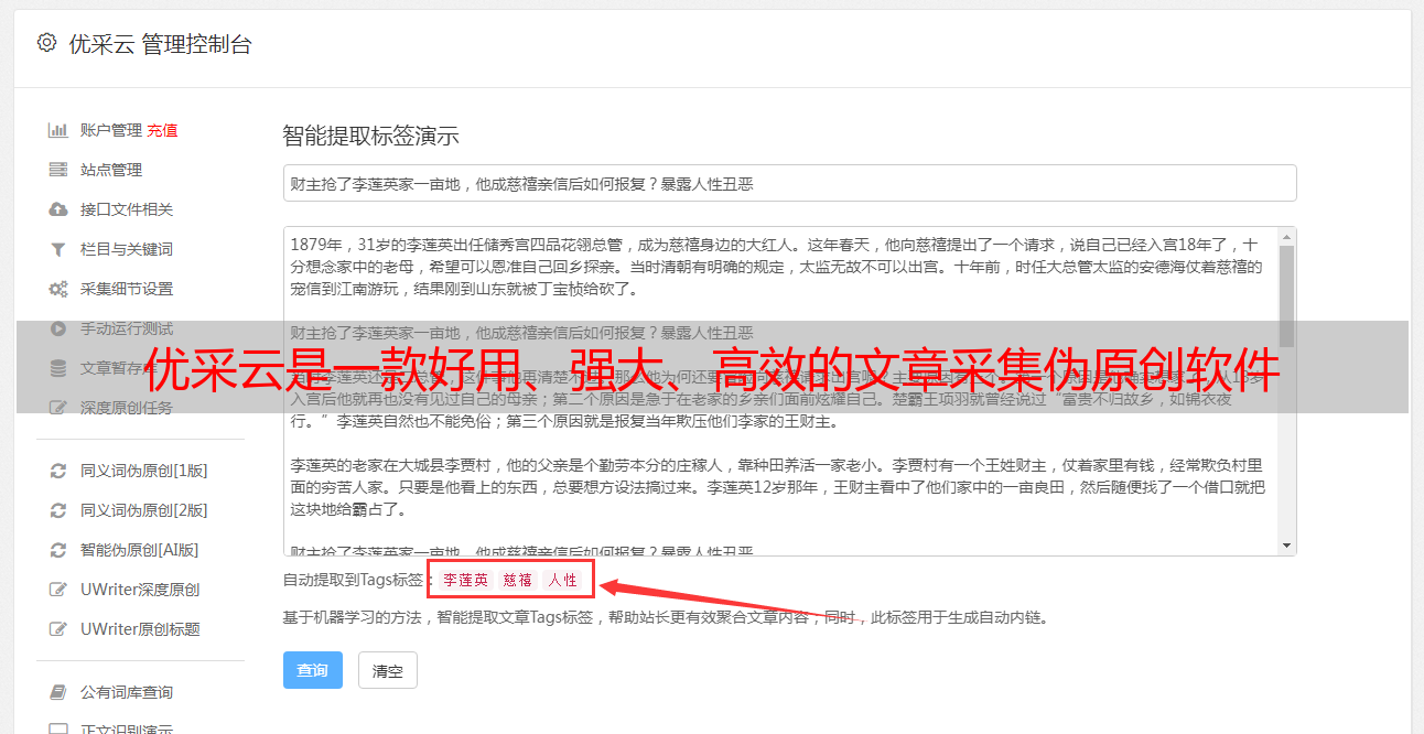 优采云是一款好用、强大、高效的文章采集伪原创软件