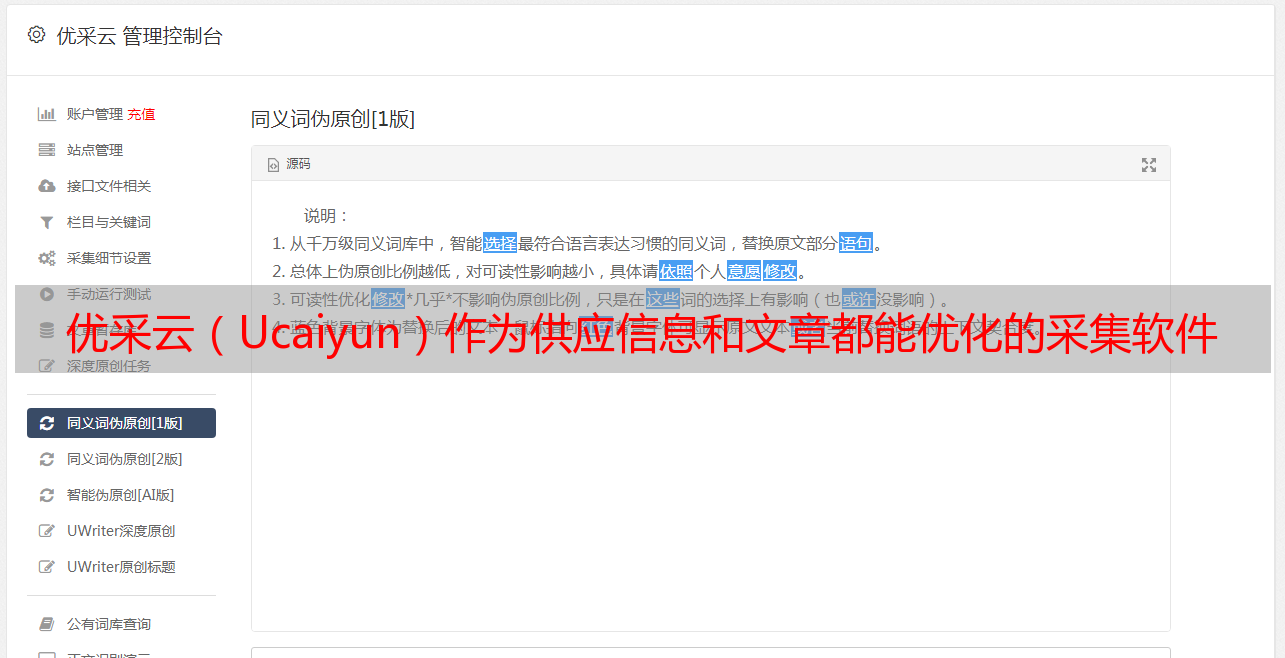 优采云(Ucaiyun)作为供应信息和文章都能优化的采集软件