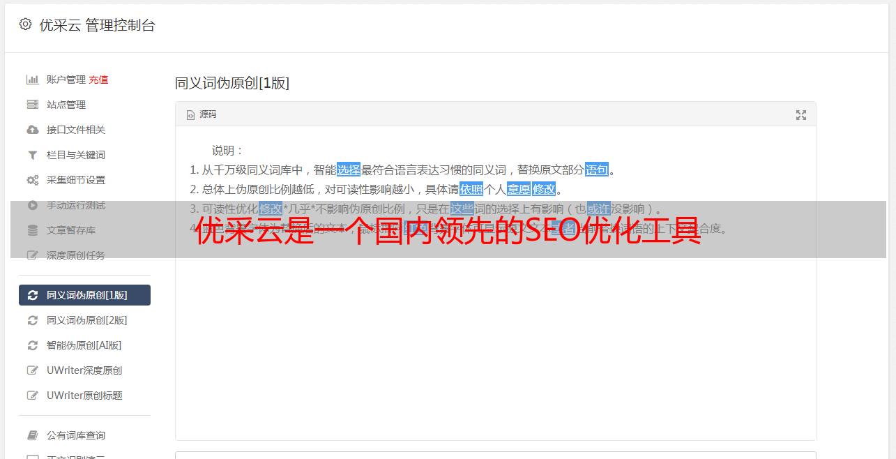 优采云是一个国内领先的SEO优化工具,主要功能是帮助用户快速获取、整理和分享各类信息。该软件拥有强大的内容采集能力、SEO优化功能和PDF格式生成功能,无论是对个人用户还是企业用户都有很大的帮助。此外,该软件拥有一套安全、可靠的后台数据库系统,方便用户随时查看和使用。