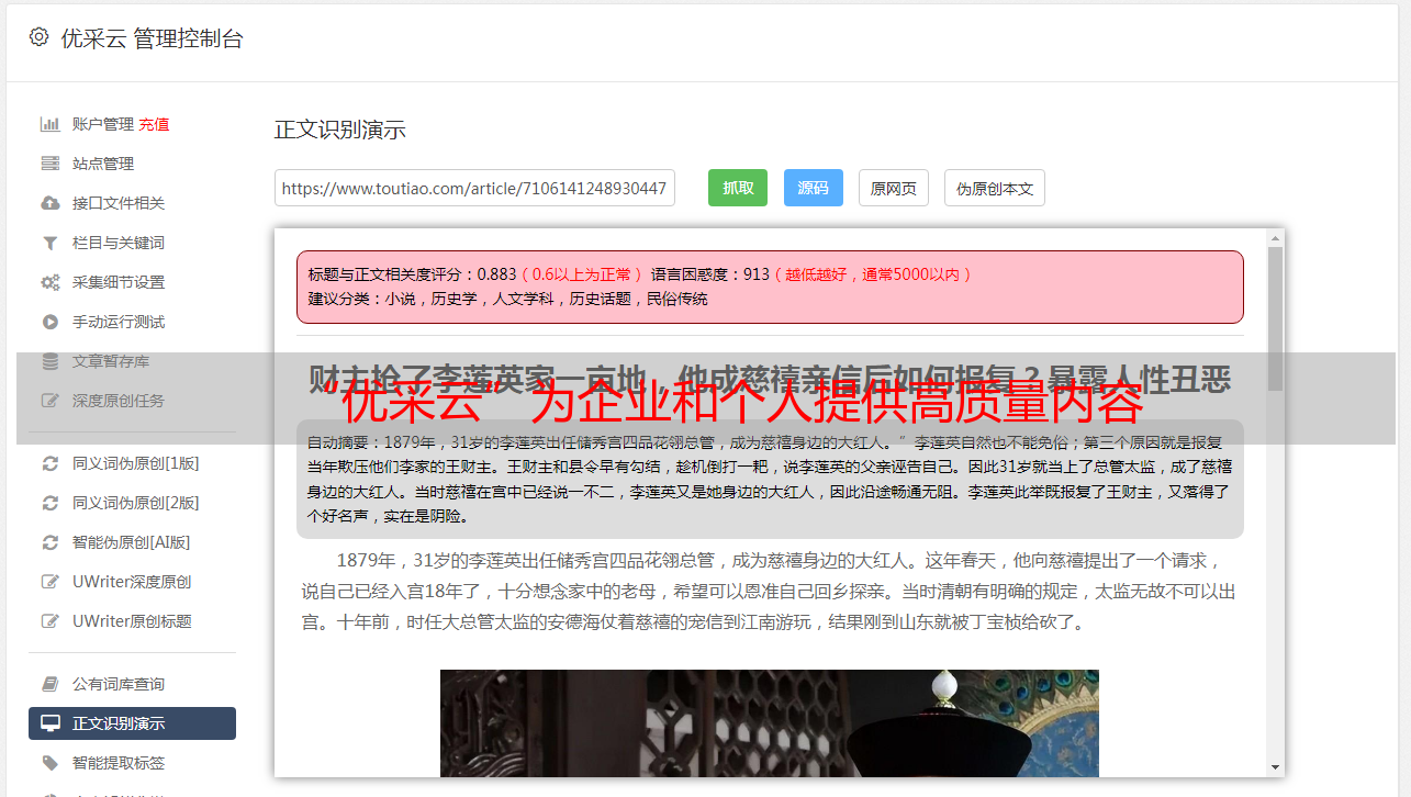 总之,“优采云”是一款十分有效和方便使用的平台;无论是寻找医疗行业伪原创兼聡人员或是学习SEO相关内容都十分方便快捷。想要了解更多相关信息请前往官网www.ucaiyun.com 进行浏览。