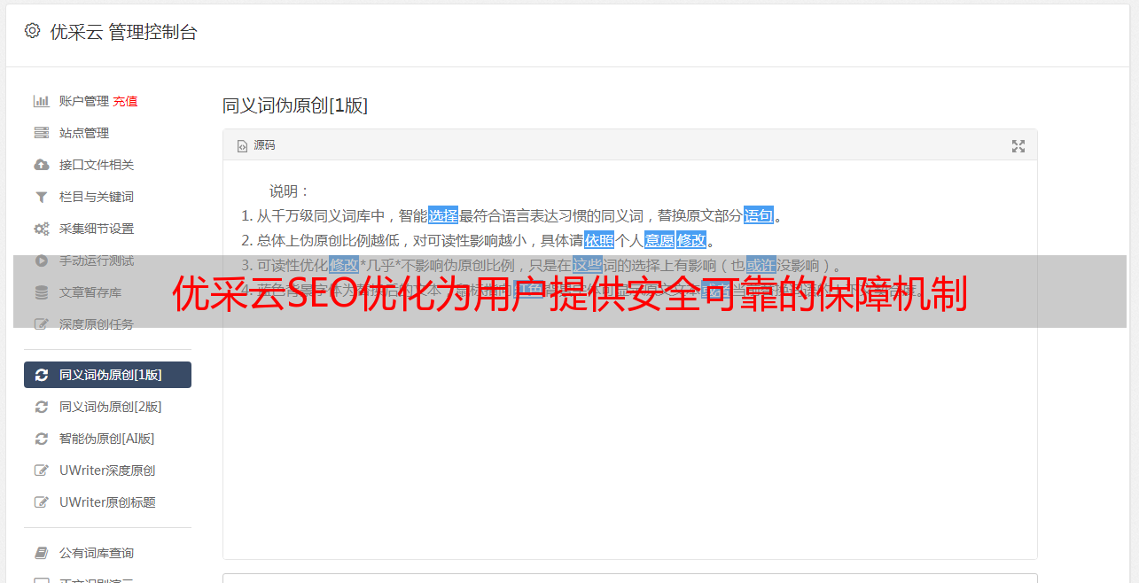 其中,优采云SEO优化是一款非常出色的在线伪原创工具,它可以帮助用户快速生成大量的伪原创文章,而且不会违反任何版权法律。此外,它还能够对文章进行语法检查、关键词提取、SEO优化等功能,从而使文章更加吸引人。