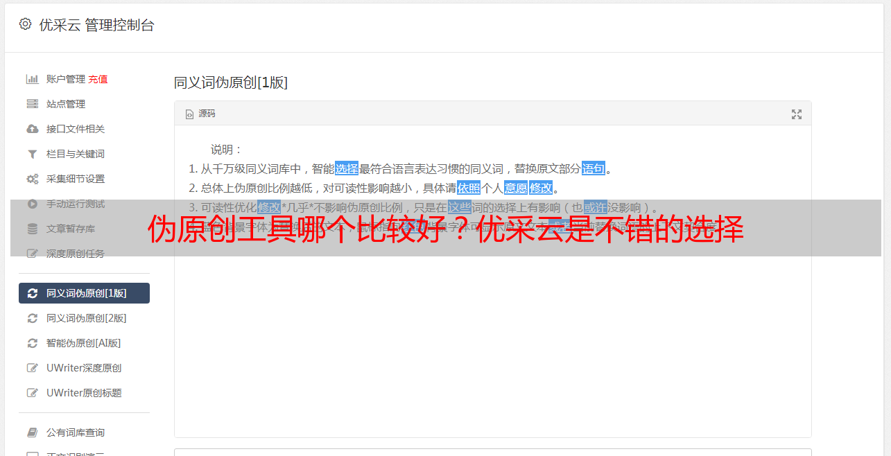 伪原创工具哪个比较好?优采云是不错的选择